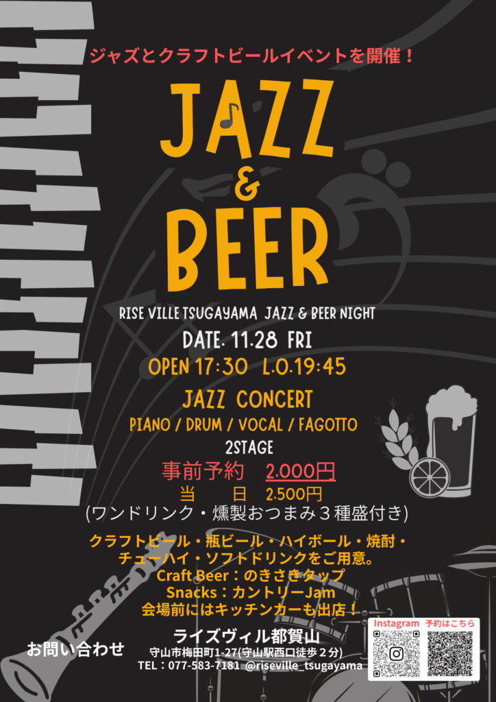 JAZZの生演奏と地元クラフトビールを味わう特別な夜を開催します。